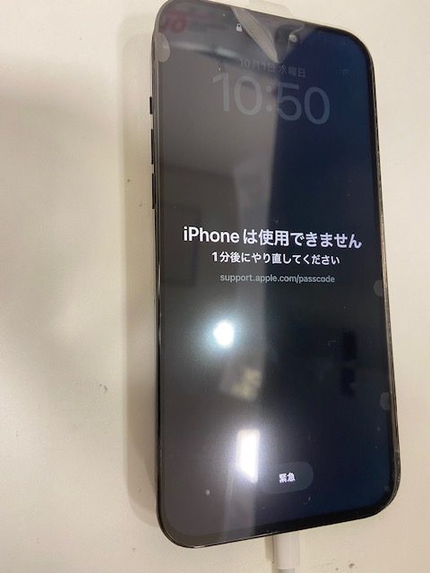 今回は症状が出てから早めに修理のご依頼をいただけた為、1分後に正しいパスコードを入れ、iPhoneは使用できる状態になりました。